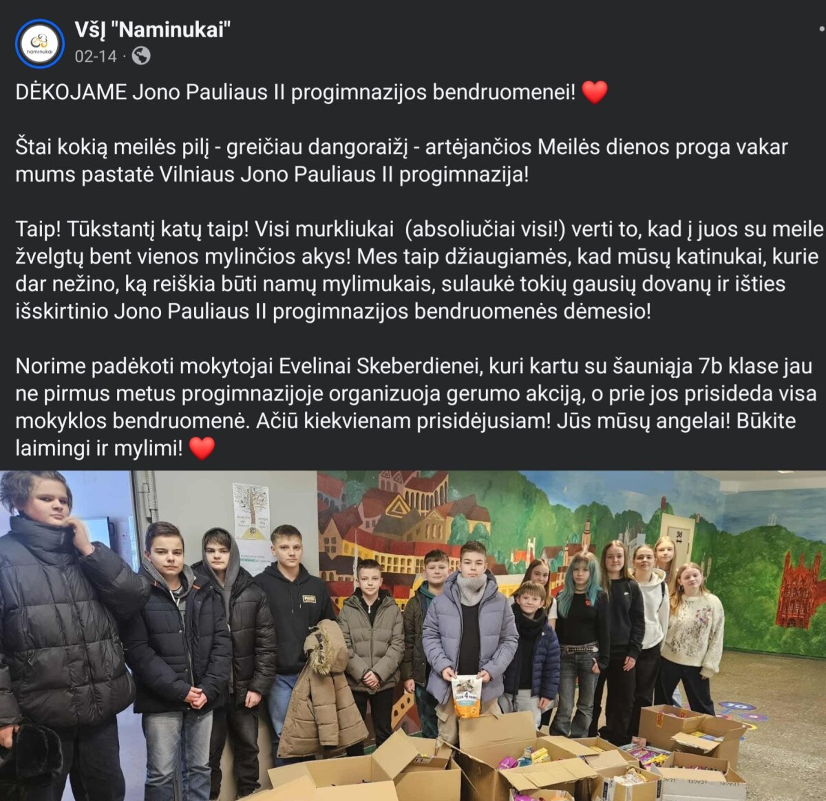 Pal. J. Matulaičio socialinės veiklos komanda nuoširdžiai dėkoja Vilniaus Šv. Jo... -