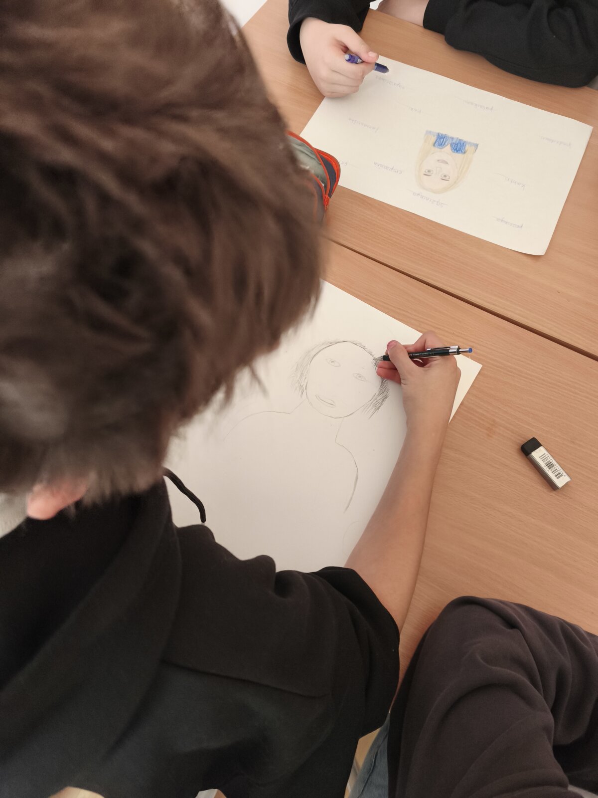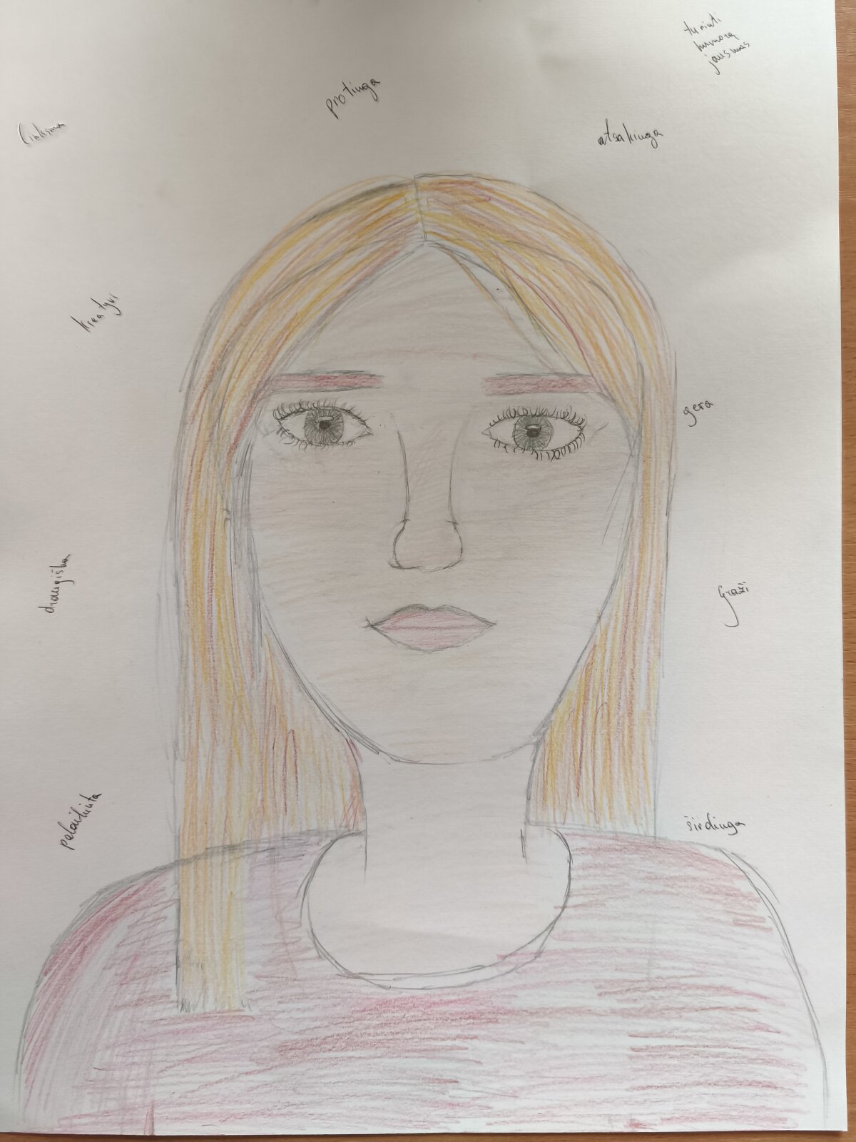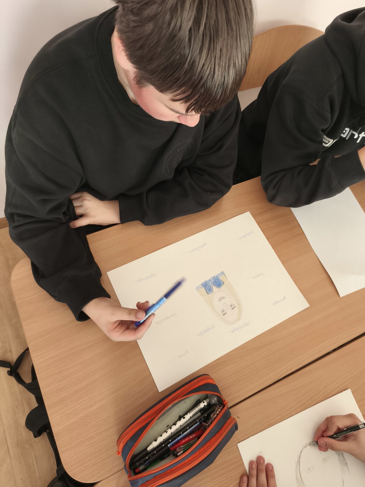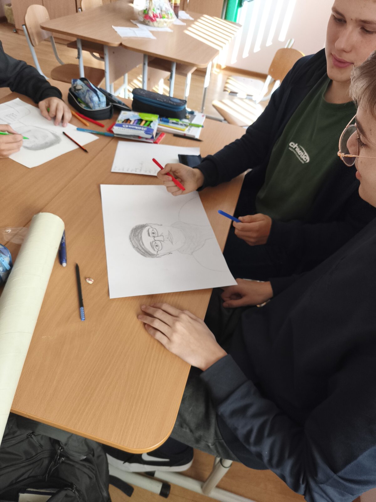 Mokytojų dienos proga 6c, 6e, 8c, 8e ir 8d klasėse lietuvių kalbos pamokos buvo kitokios nei įprastai – be vadovėlių ir be testų! Dirbdami poromis mokiniai turėjo nupiešti pasirinkto dalyko pedagogą. Šalia kiekvieno kūrinio vaikai užrašė būdvardžius bei dalyvius, apibūdinančius jų mokytoją. Ant lapų žydėjo žodžiai: kantri, kūrybinga, šmaikšti, įkvepianti, teisinga, linksma, supratinga, išradinga... Galiausiai kiekvienas parašė trumpą pastraipą, kodėl didžiuojasi, kad būtent šis mokytojas ar mokytoja juos moko. Skaitant šiuos žodžius buvo sunku nesusigraudinti – vaikai rašė, kad mokytojas arba mokytoja moka išmokyti net tada, kai atrodo, jog nieko neįmanoma suprasti, ir jog visada tiki savo mokiniais, net kai jie patys savimi abejoja.