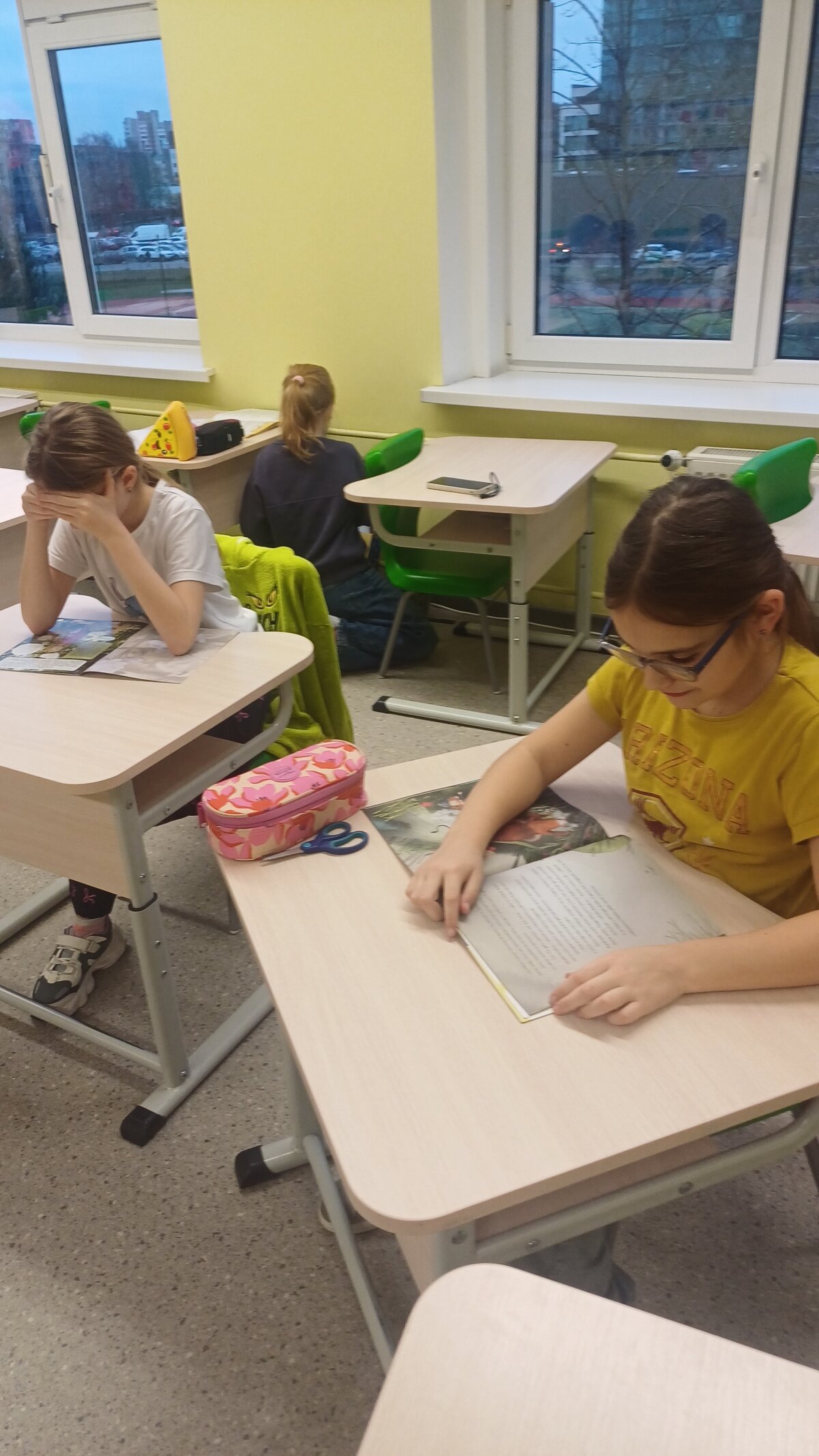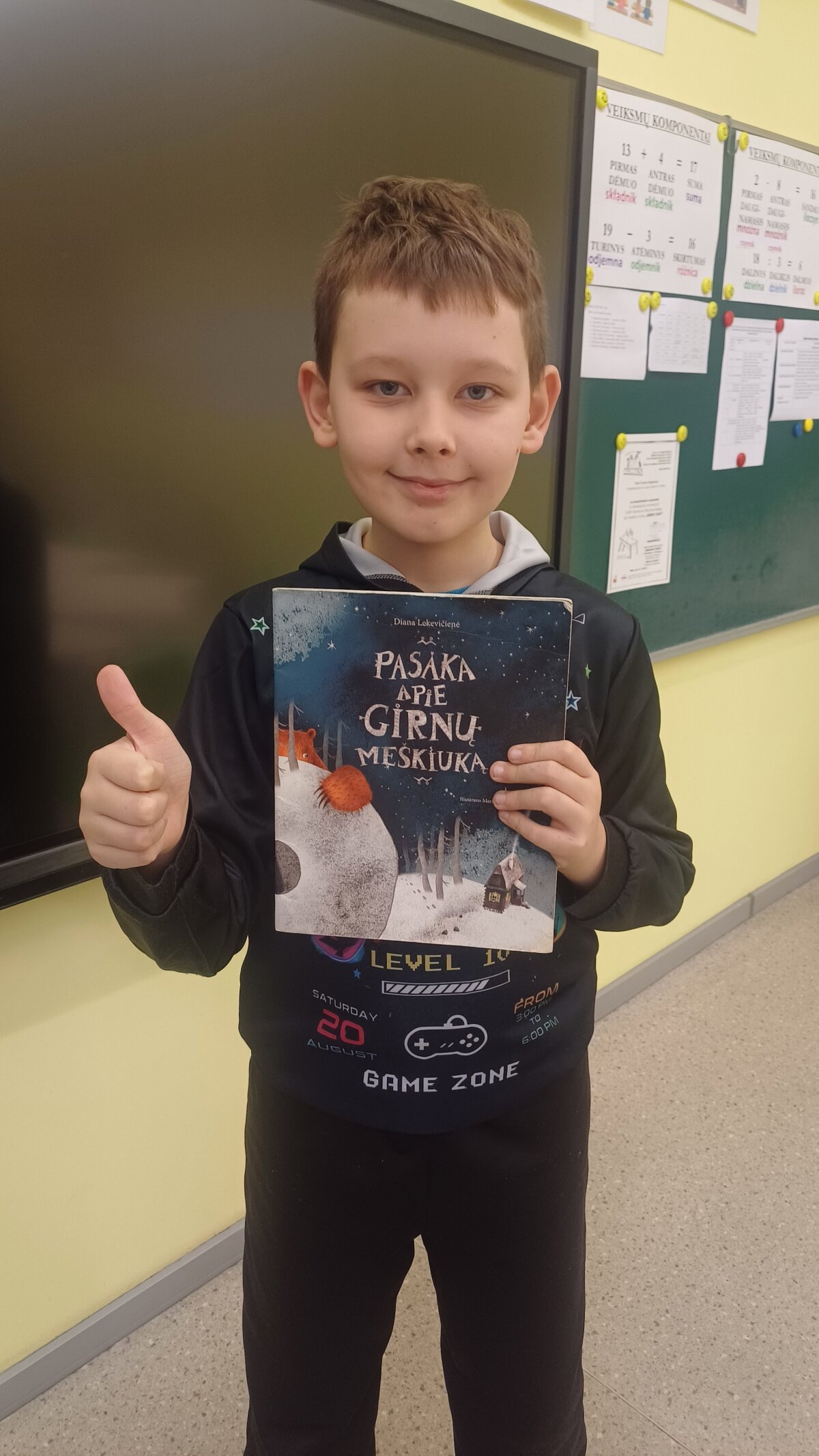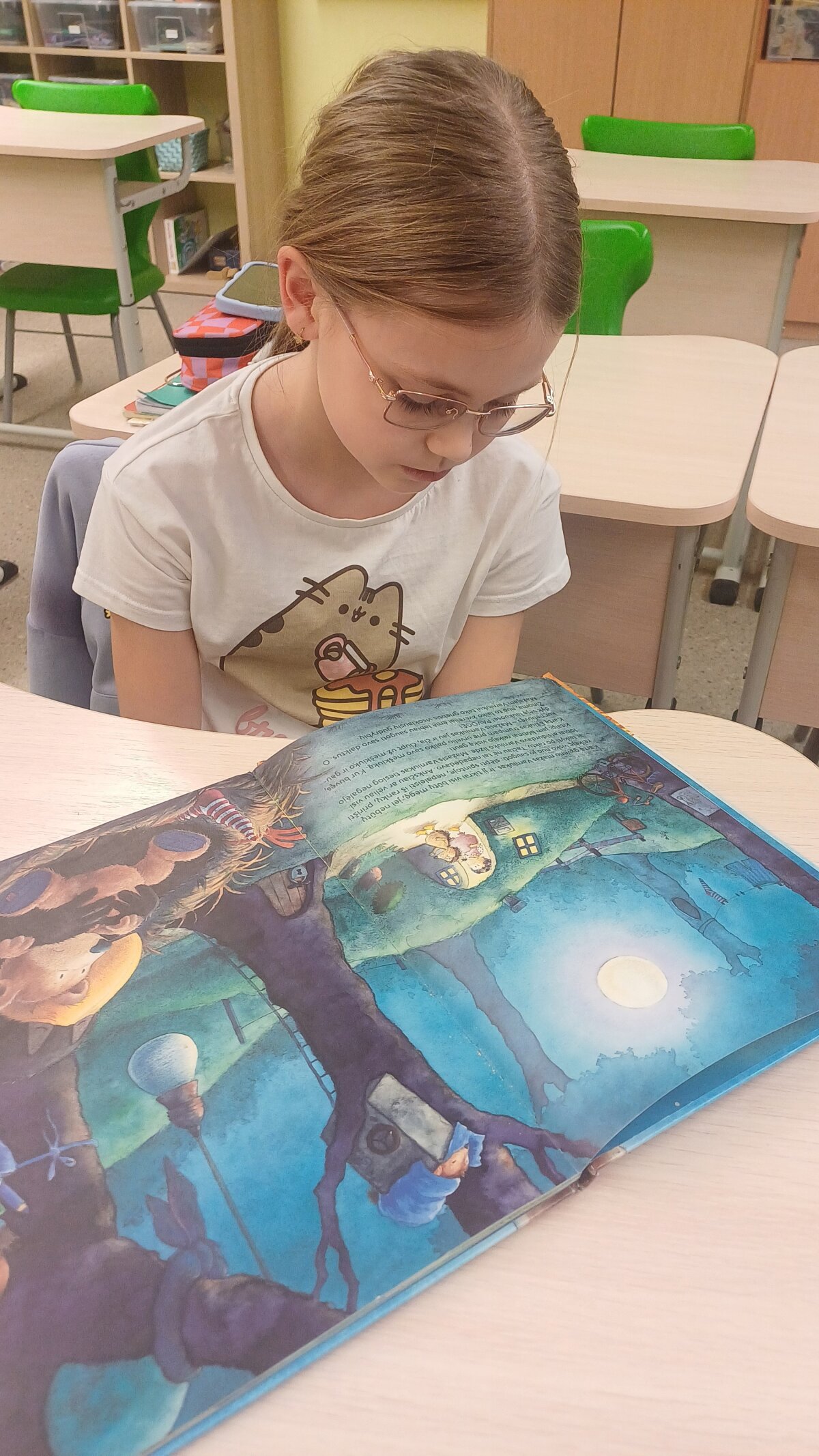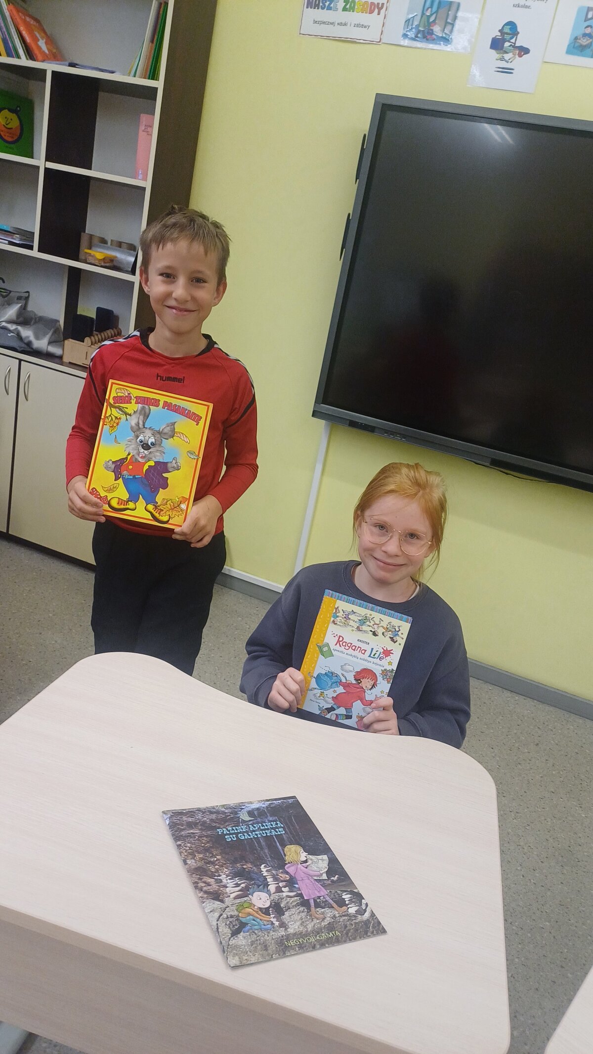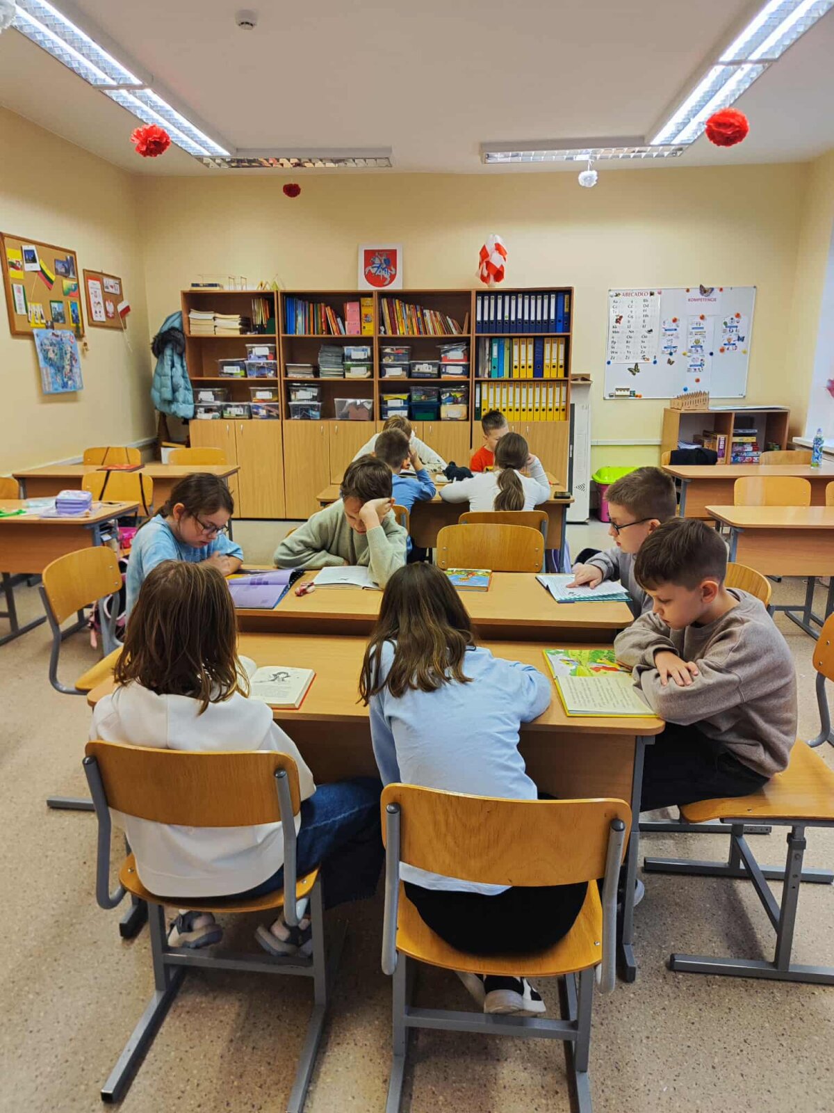 Truputį pailsėję, mokiniai sėdasi į suolus ir atsiduria knygų pasaulyje. Šis laikas skirtas reguliariam ir įdėmiam lietuviškų knygelių skaitymui, kuris yra esminis siekiant tobulinti kalbos įgūdžius. Kas tyliai, kas pusbalsiu, vaikai panyra į pasakojimus, keliaudami po vaizduotės šalis. Perskaitę istorijas ar jų ištraukas, išsinagrinėję paveikslėlius, mokiniai aktyviai dalinasi patirtais įspūdžiais ir mintimis su draugais. Tokios diskusijos ne tik padeda geriau įsisavinti naują žodyną, bet ir skatina laisvai ir taisyklingai reikšti mintis lietuvių kalba. Knygų pasirinkimas didelis: kiekviename kabinete įrengta maža „bibliotekėlė“, o jeigu nerandama tinkamos knygos, mokiniai skuba į mokyklos biblioteką arba apžiūri koridoriuose pastatytas „namelių“ lentynėles, kuriose nuolat papildoma literatūra. Ši veikla praturtinama gražia bendruomeniškumo tradicija: reguliariai pas pirmokus ateina vyresnių klasių mokiniai (paprastai 5–8 klasių). Jie tampa mažaisiais mentoriais ir skaito mažiesiems pasakas bei įdomias istorijas lietuvių kalba. Šios popietės suteikia pirmokams progą išgirsti pavyzdinį lietuvišką tarimą ir intonaciją, o vyresniesiems – ugdyti atsakomybę ir viešojo kalbėjimo įgūdžius. Skaitydami knygas ir dalindamiesi jomis, vaikai lavinasi, ugdo savyje gėrį ir stato tvirtus lietuvių kalbos ir literatūros pamatus ateičiai. Taigi, anot rašytojo H. Ibseno, „Tu knygą pamėgsi, tave pamėgs visas pasaulis“.
