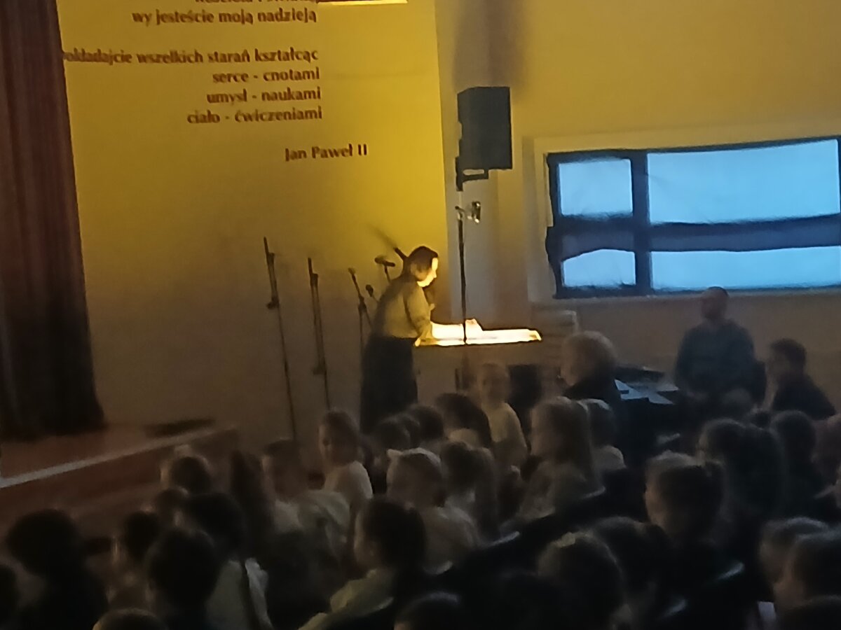 Šaltą žiemos dieną mūsų progimnazijos mokiniai persikėlė į nepaprastą, magijos kupiną animacijos pasaulį, kuriame šviesos, muzikos ir smėlio smiltelių pagalba atgijo jautrios istorijos ir įtaigūs vaizdai. Bendradarbiavimo su Žešuvo (Lenkija) teatru „Febus“ dėka, visa mokyklos bendruomenė pirmą kartą dalyvavo tokiame renginyje. Spektaklio metu gimstantys paveikslai žadino vaizduotę, primindami apie galią slypinčią pasakose. Pradinių klasių mokiniai žiūrėjo „Pelenę“, vyresniųjų klasių – „Sniego karalienę“, o vyriausieji progimnazijos mokiniai stebėjo „Mažąjį princą“. Sunku apsakyti įspūdžių ir emocijų gausą, kurią suteikė šis išskirtinis susitikimas su menu. Spektakliai sužavėjo ne tik originalia raiškos forma, bet ir turinio gilumu bei nepaprasta atmosfera, kuri ilgam išliks atmintyje. Ši nepamirštama patirtis parodė, kad teatras – net ir tokia neįprasta forma – gali įkvėpti, jaudinti ir gražiai bei prasmingai mokyti. Pasaulyje yra vos 250 šio meno atstovų, tarp kurių ir ponia Marina Risicz, kurianti ne tik rankomis, bet ir širdimi. Sinchronizuotas vaizdas ir žodis, atsidavimas bei šilta šypsena užbūrė dalyvius – visi, sulaikę kvapą, sekė kiekvieną rankos judesį ir apdovanojo menininkę ilgais plojimais bei nuoširdžiu susižavėjimu.