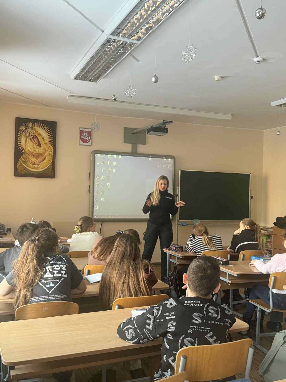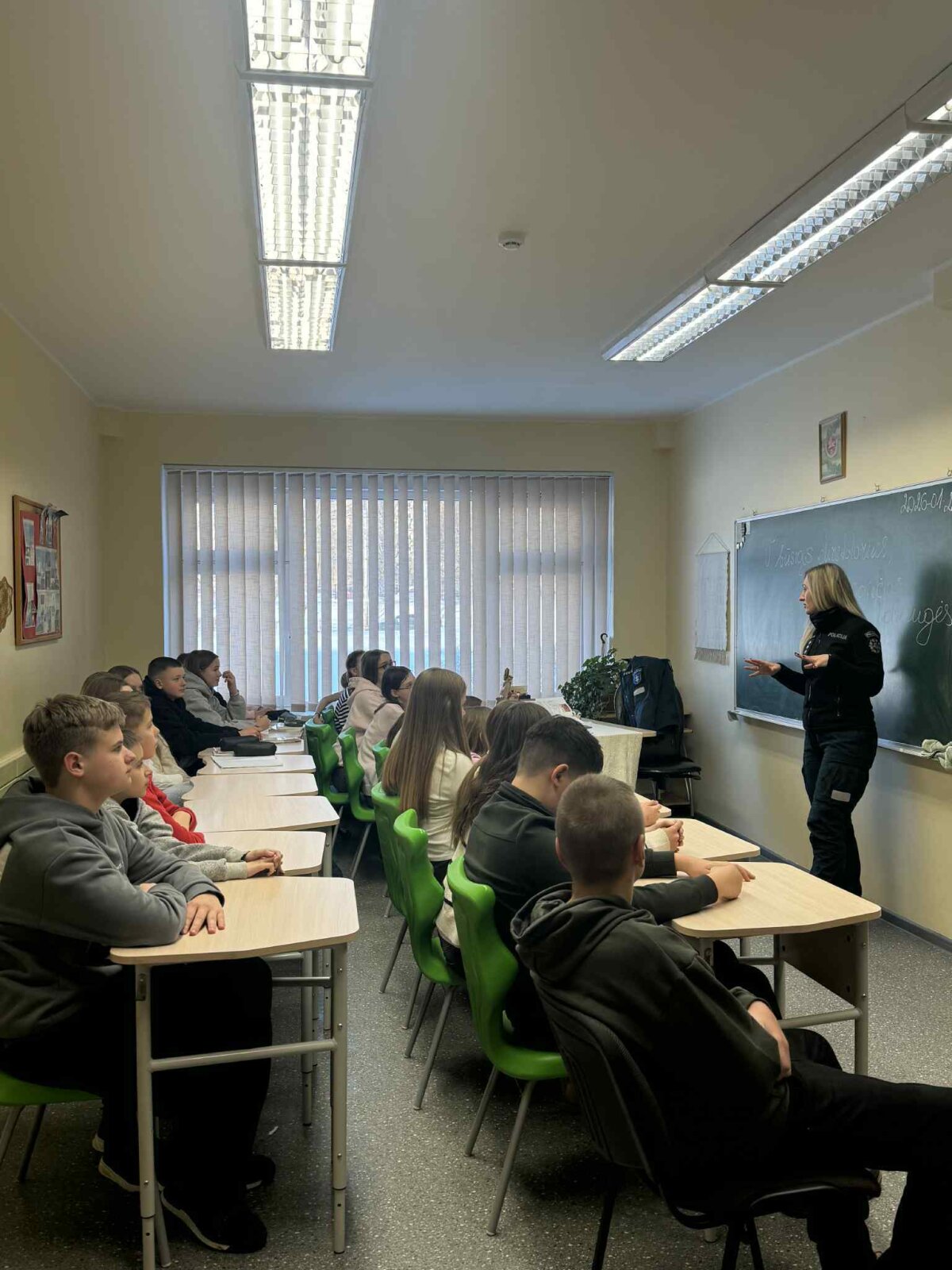 Paskaitų metu mokiniai buvo supažindinti su teisine atsakomybe, aptartos nepilnamečių teisės ir pareigos, dažniausiai pasitaikančios teisės pažeidimų situacijos bei galimos jų pasekmės. Pareigūnės aiškiai ir mokiniams suprantamai paaiškino, kokia atsakomybė taikoma už netinkamą elgesį, patyčias, smurtą, vagystes, elektroninius nusikaltimus ir kitus teisės pažeidimus.
