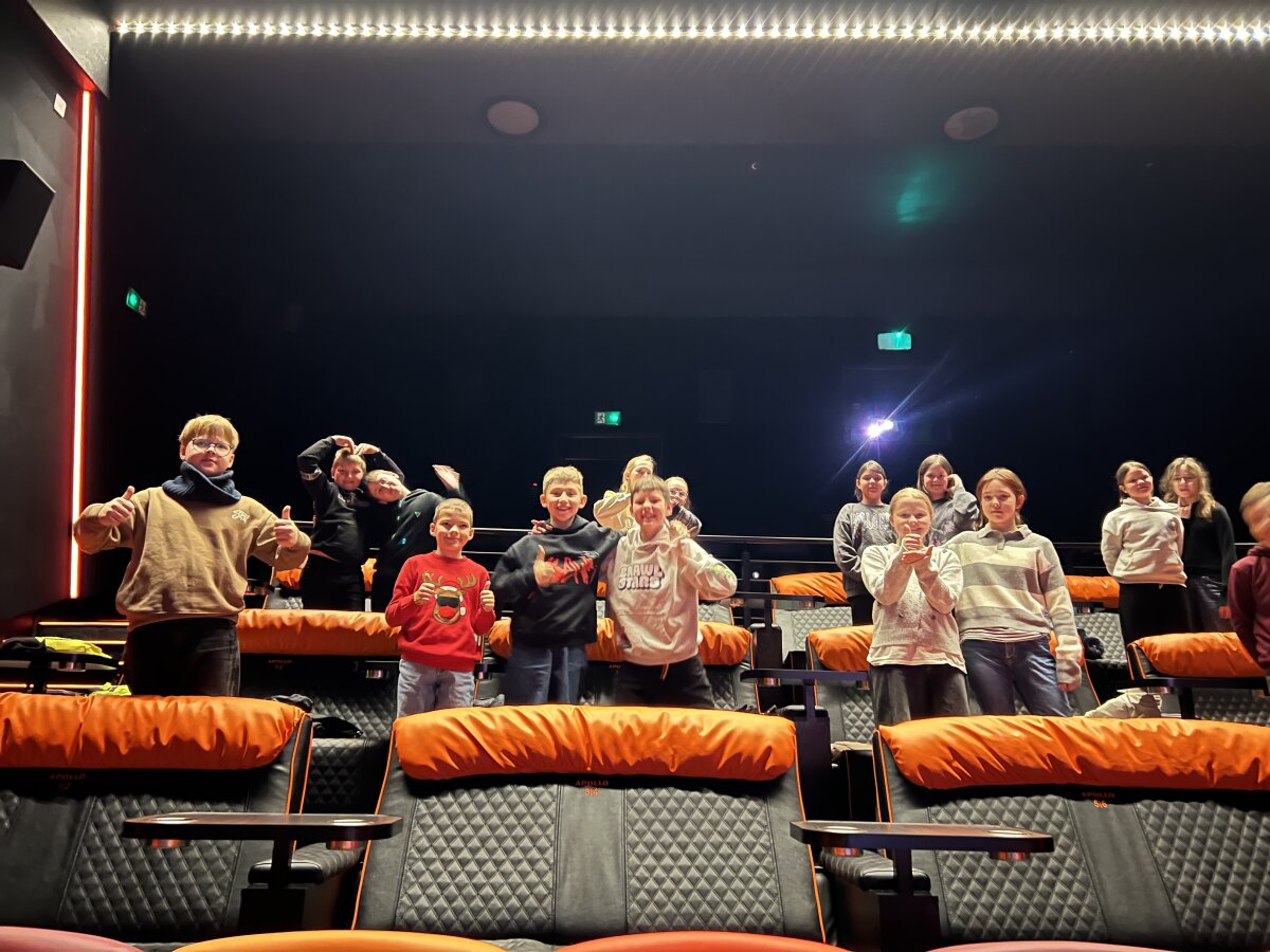 Tai buvo ne tik smagi išvyka ir lietuvių kalbos pamoka už mokyklos ribų vadovaujama lietuvių kalbos ir literatūros mokytojų G. Vilkanecienės, E. Sadovskos ir pradinių kl. mokytojos J. Staševskos, bet ir puiki proga pabūti kartu, pasidalinti įspūdžiais bei patirti bendrą nuotykį. 4b klasė dar ilgai prisimins šią kelionę į kino teatrą – lyg mažą savo pačių žingsnį link žvaigždžių!