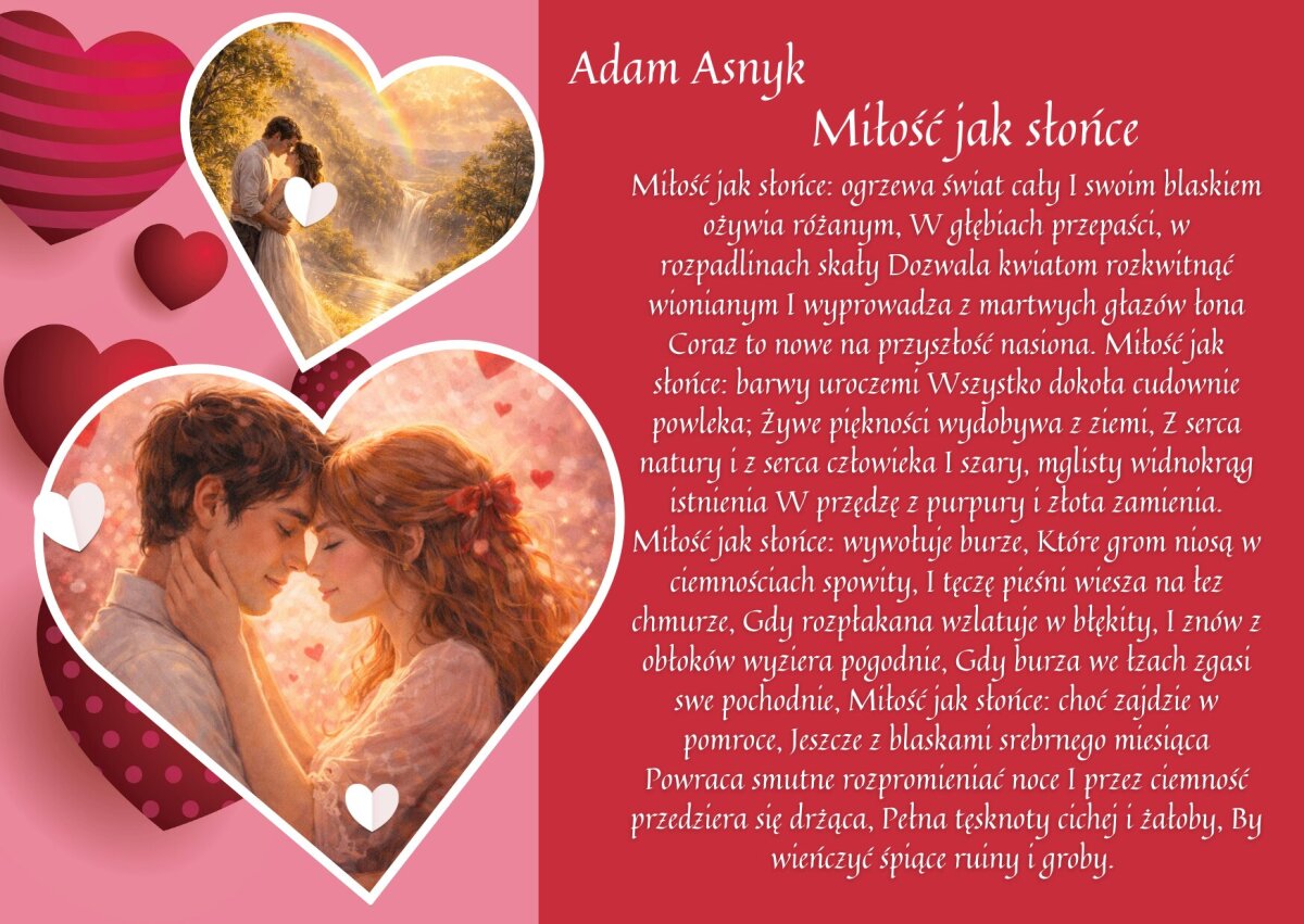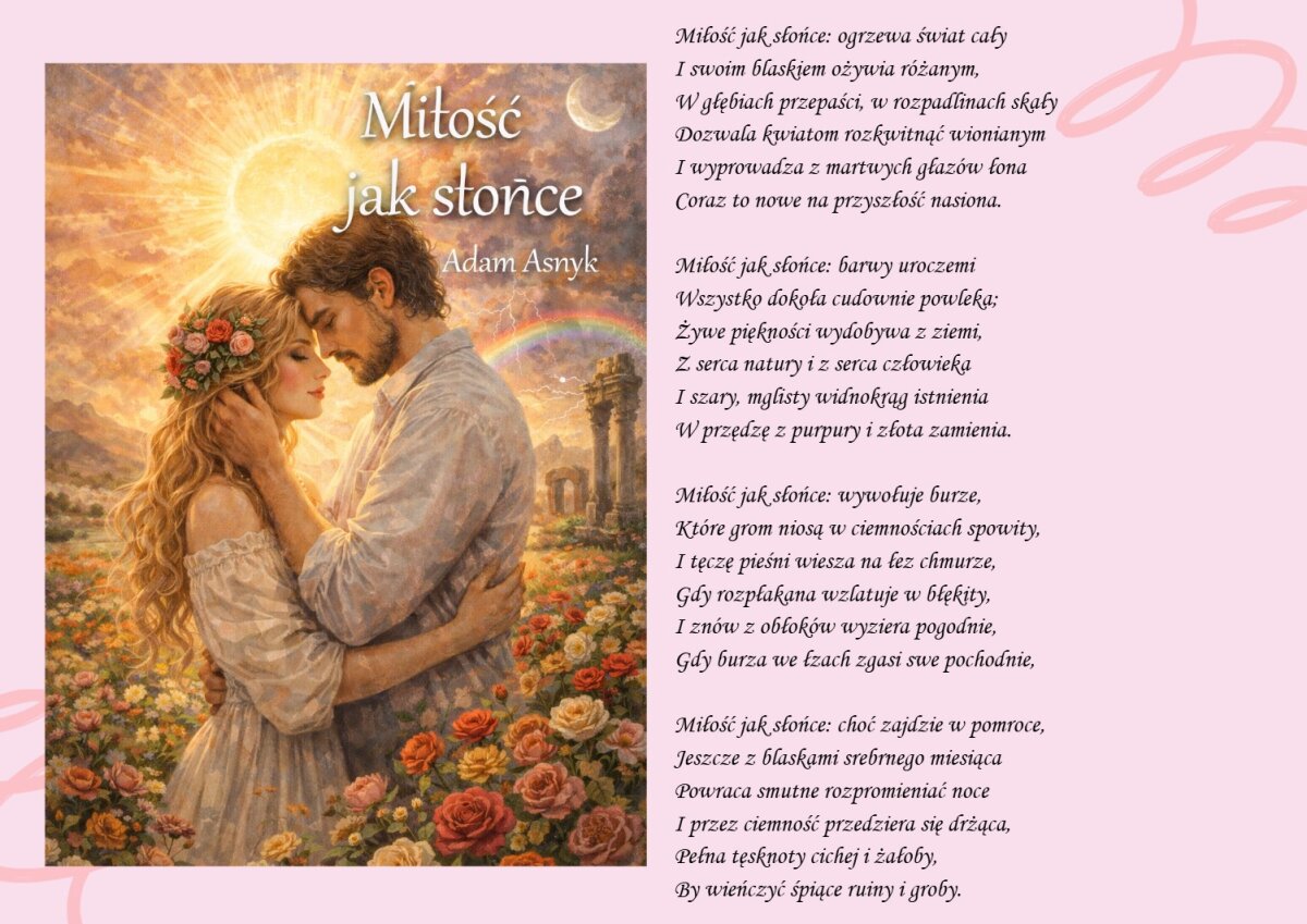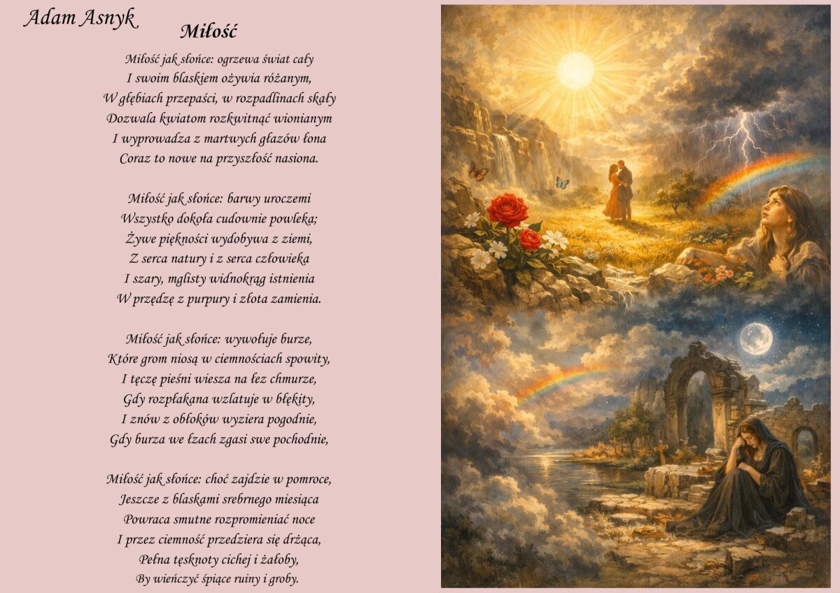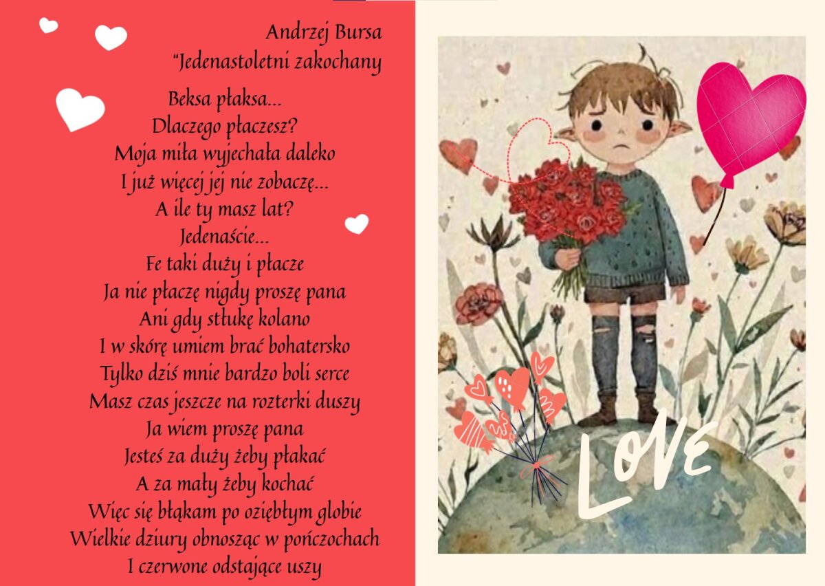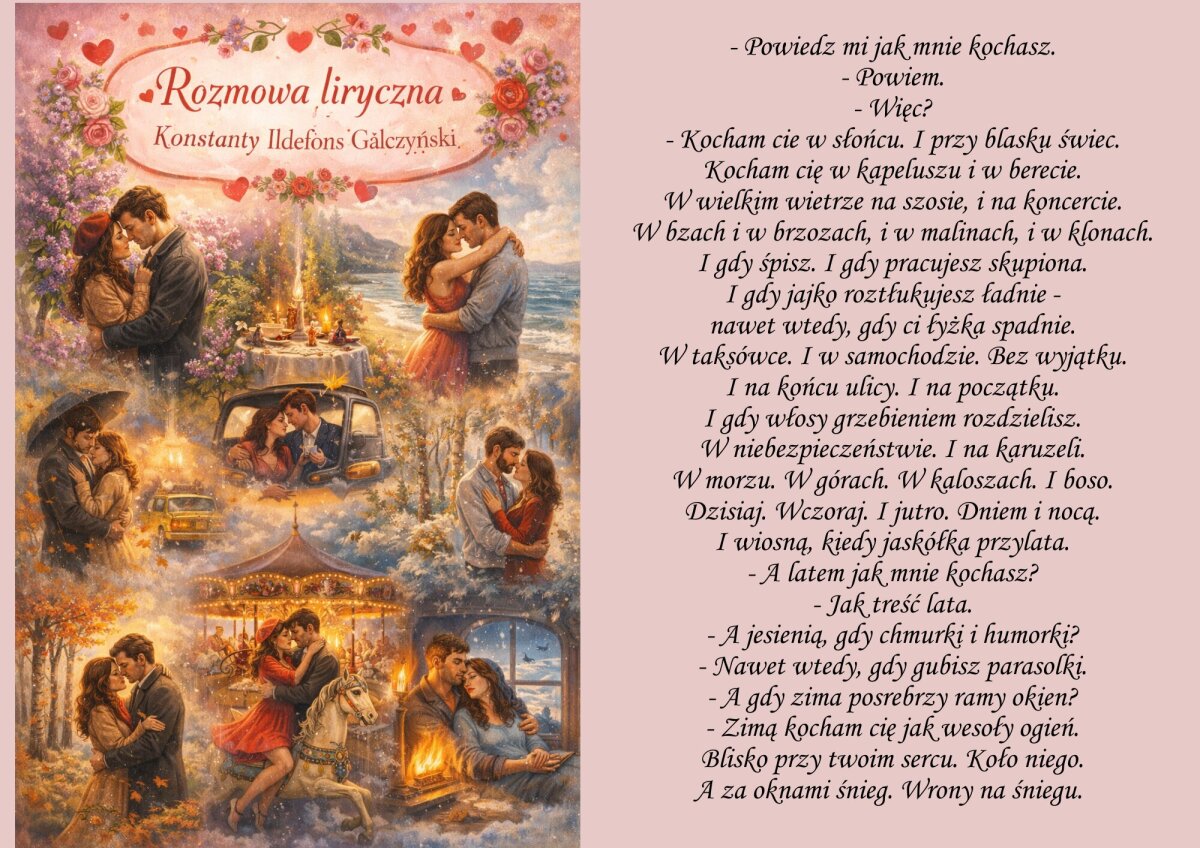 Lenkų kalbos pamokoje (mokyt. B. Ustjanovska) mokiniai dirbo su iškilių poetų kūriniais – Vislavos Šimborskos, Adamo Asnyko, Marijos Pavlikovskos-Jasnoževskos ir kitų. Šeštokai ieškojo ir aiškinosi, kaip eilėraščiuose vaizduojama meilė, atkreipdami dėmesį į skirtingus šio jausmo perteikimo būdus – nuo užuominomis kalbančios Vislavos Šimborskos vizijos, per romantišką Adamo Asnyko pakilumą, iki subtilios Marijos Pavlikovskos-Jasnoževskos lyrikos. Mokiniai analizavo, kokie jausmai vyrauja kūriniuose, kokiomis stilistinėmis priemonėmis kuriama nuotaika ir kaip poezijoje suvokiama meilė.