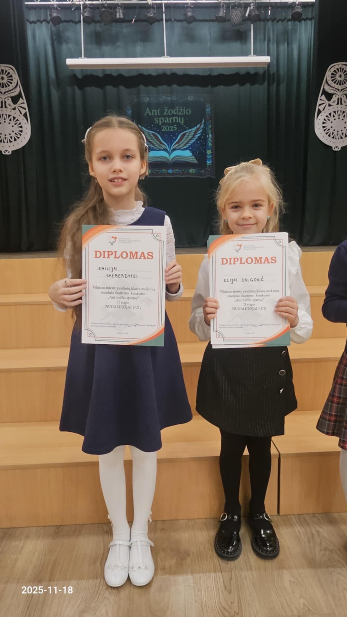 Džiaugiamės galėdami pasidalinti nuostabia žinia – dvi mūsų mokyklos mokinės sėkmingai sudalyvavoII pradinių klasių mokinių meninio skaitymo konkurso „Ant žodžio sparnų“etape ir abi pelnė galimybę keliauti įIII konkurso etapą!