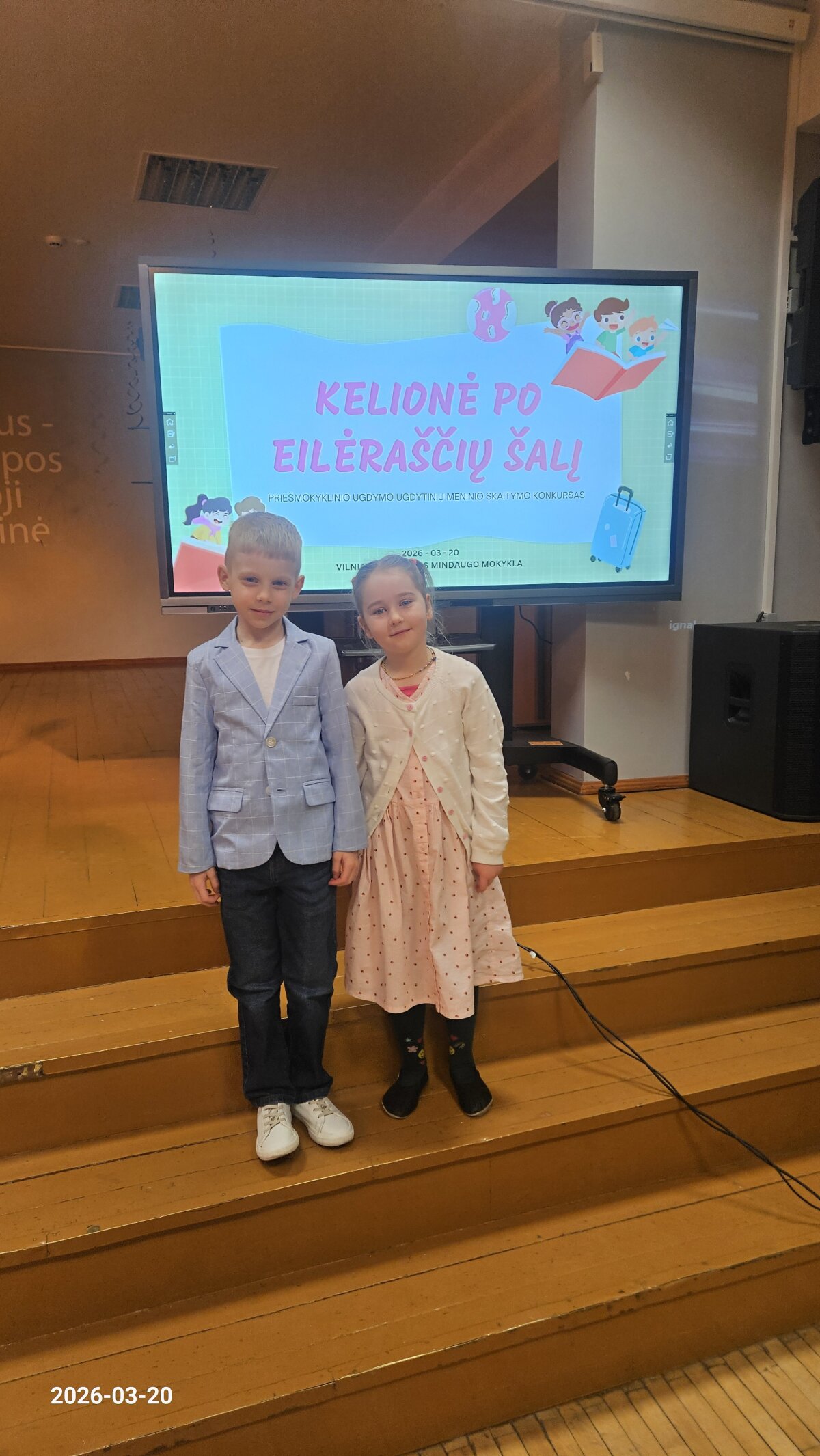 PUG mokiniai Fabian Balkovski ir Kamilė Stankevič 2026-03-20 dalyvavo Vilniaus miesto meninio skaitymo konkurse „Kelionė po eilėraščių šalį“ vykusiame Vilniaus karaliaus Mindaugo mokykloje. Vaikai pirmą kartą lipo į sceną, įveikė jaudulį ir drąsiai skaitė pasirinktus kūrinius. Jiems puikiai sekėsi – pasirodymai buvo nuoširdūs ir įkvepiantys. Didžiuojamės jų pastangomis ir džiaugiamės šiais šauniais pasiekimais!