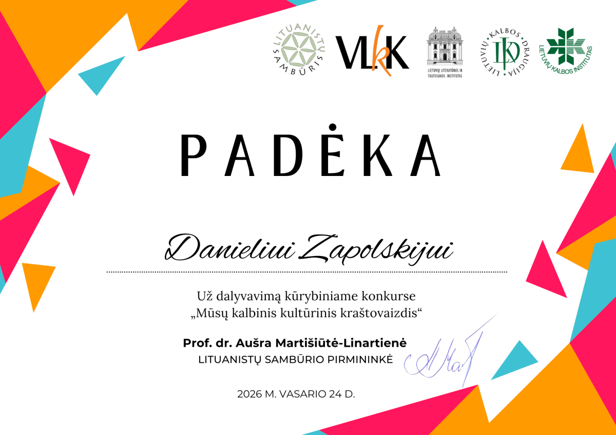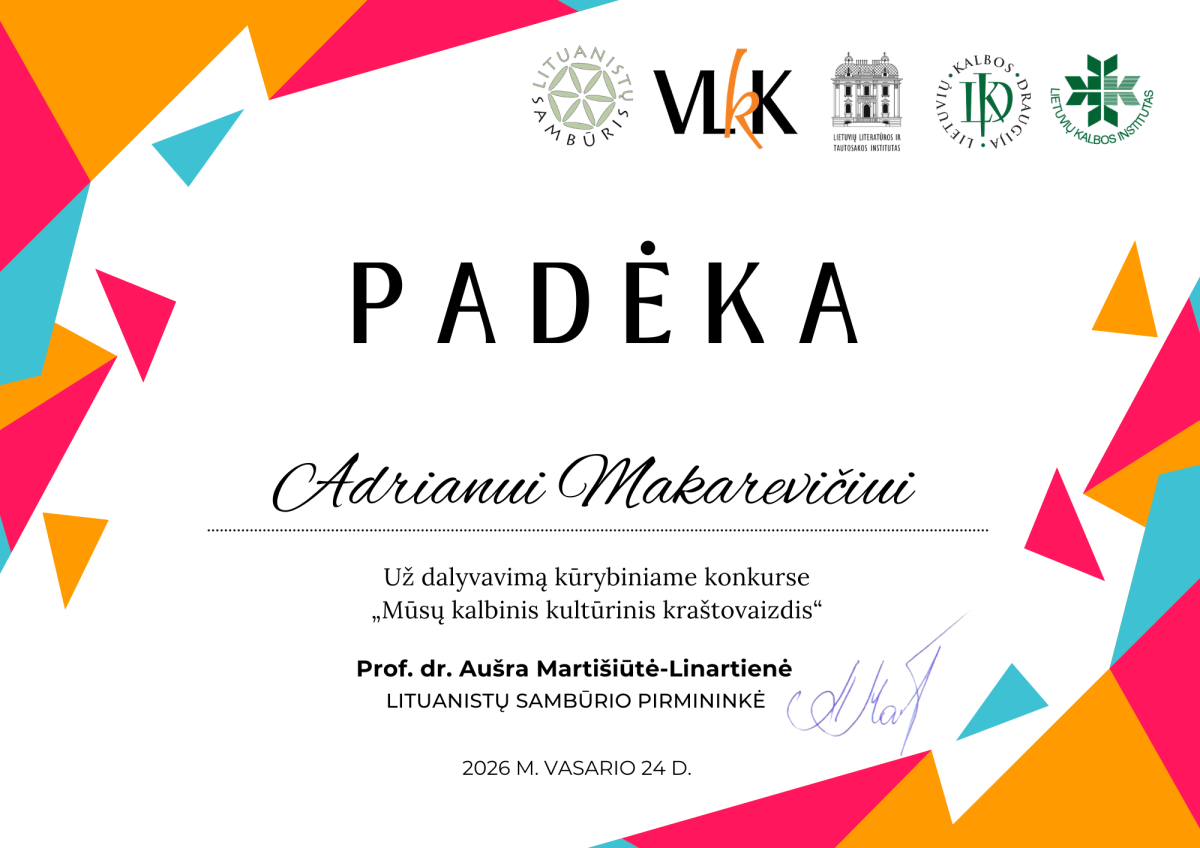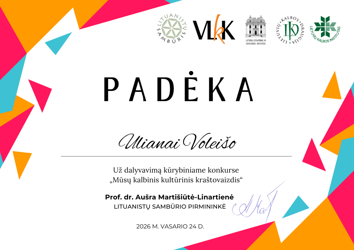 Nuoširdžiai dėkojame konkurso organizatoriams, kad turime galimybę puoselėti lietuviško žodžio grožį ir dalyvauti lituanistų rengiamuose konkursuose!