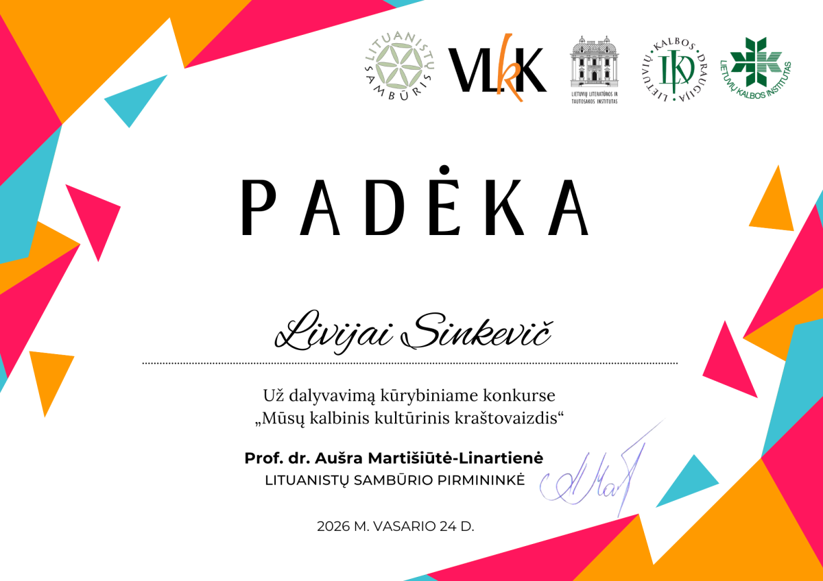 Dalyvavimas konkurse ,,Mūsų kalbinis kultūrinis kraštovaizd...