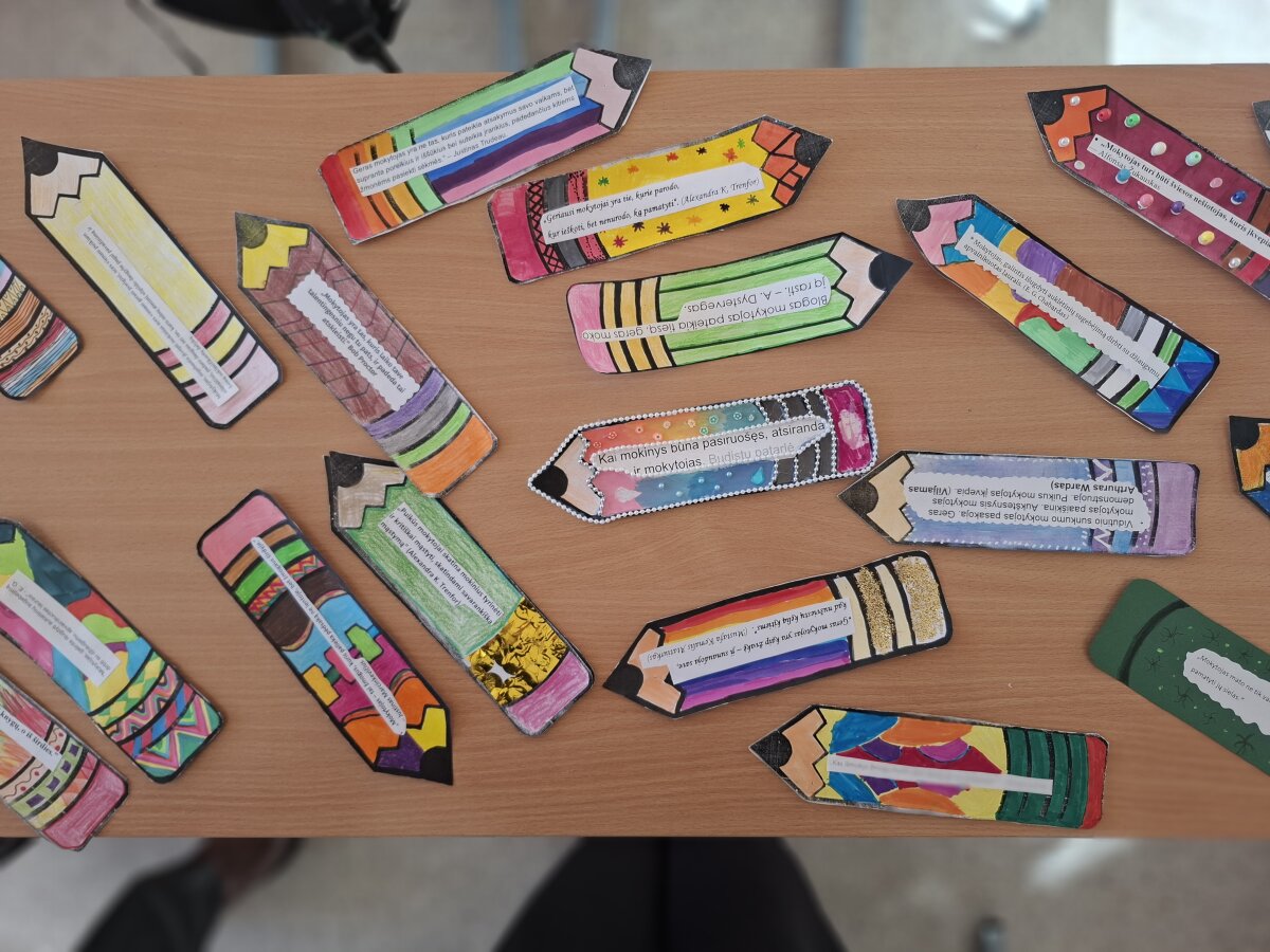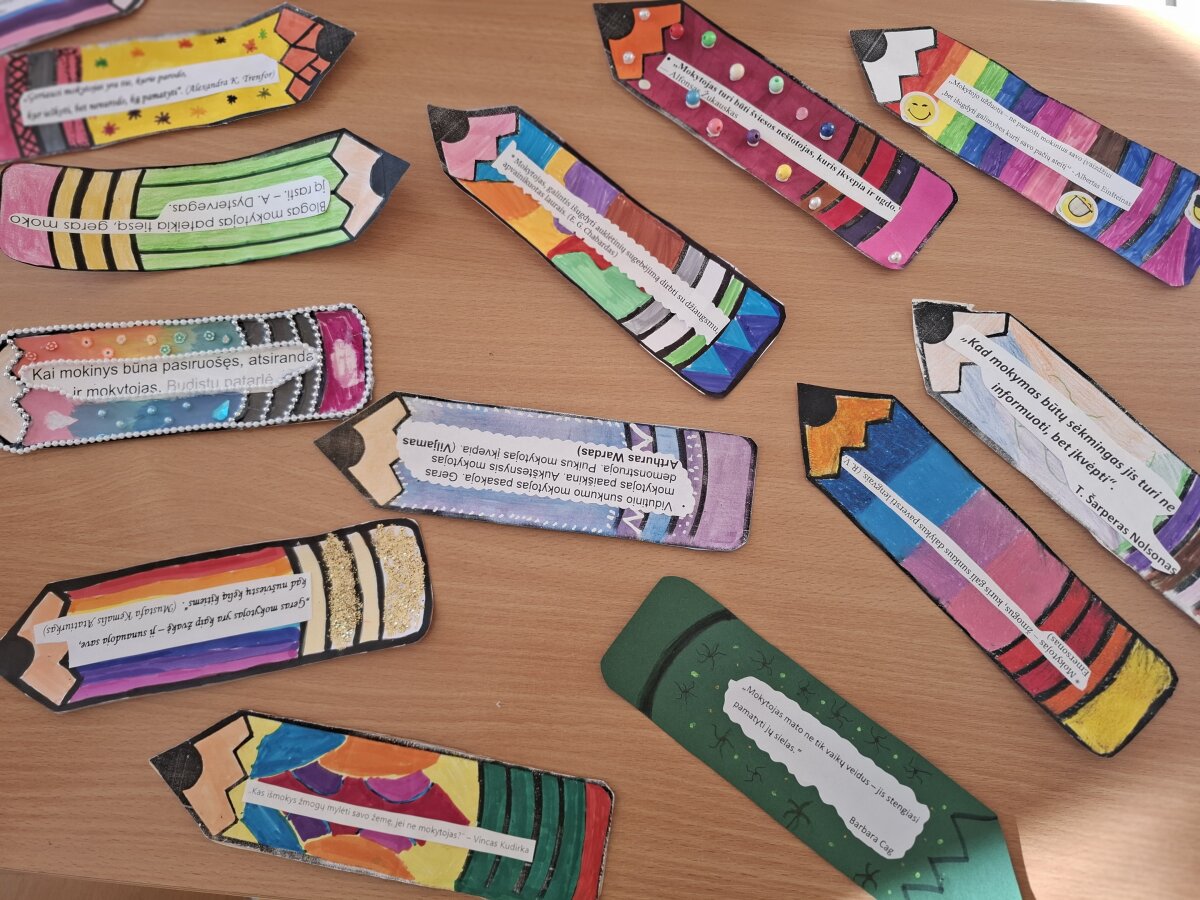 Spalio 4 d. mokykloje tradiciškai buvo paminėta Mokytojų diena. Tai proga padėkoti tiems, kurie kasdien įkvepia, ugdo ir tampa mokinių vedliais painiame žinių labirinte. 5-8 klasių moksleiviai, vadovaujami mokytojų G. Vaitiekėnienės ir I. Jakštienės parengė parodą “Auksinės mintys apie mokytoją”. Mokiniai rinko žymių žmonių pasisakymus apie mokytojus ir juos užrašė ant dekuoruotų pieštukų. Spalvotų ir žaismingų darbelių paroda džiugino mokyklos bendruomenę.