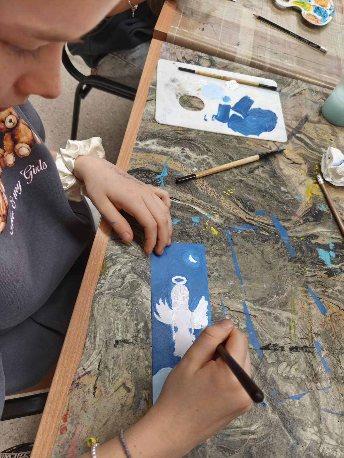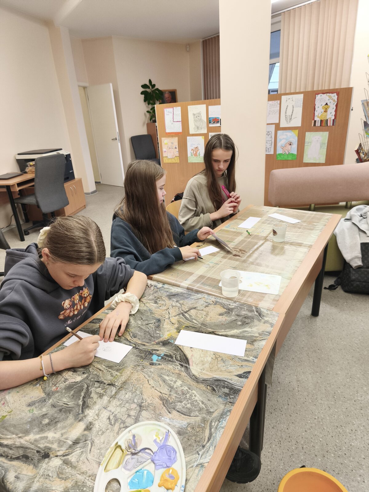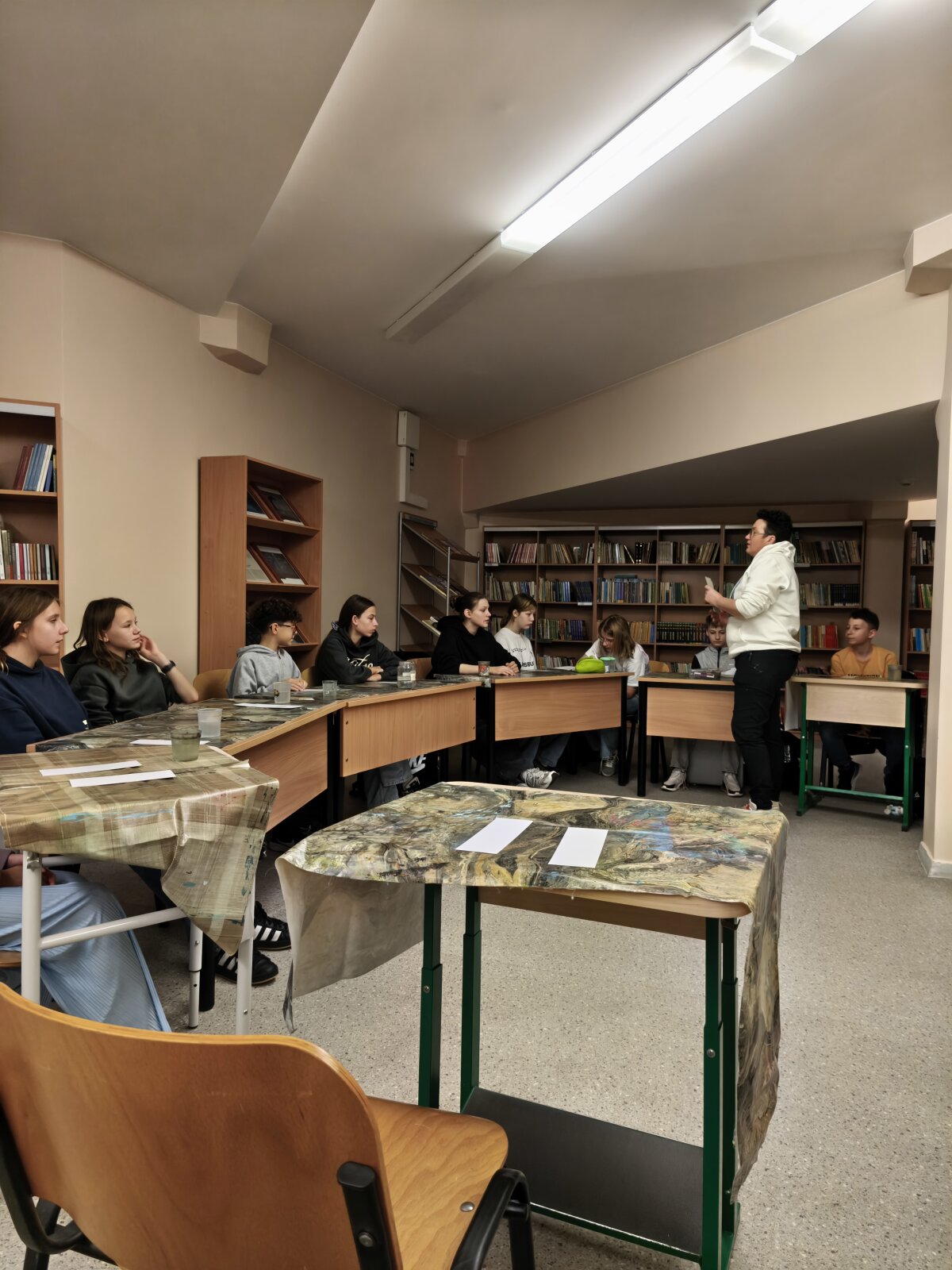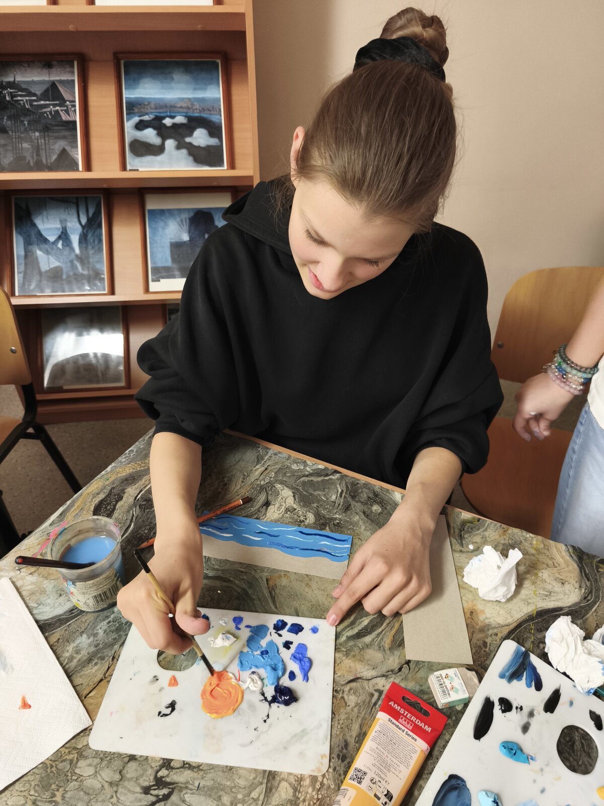 Projektinė veikla įgavo dar daugiau spalvų, kai mokiniai turėjo galimybę susitikti su Lenkijos tapytojų kūrybinės asociacijos Lietuvoje „Elipsa“ nare – talentinga dailininke Božena Naruševič. Šio susitikimo metu gimė tikri meno kūriniai – ,,čiurlioniški“ knygų skirtukai, kuriuose susilieja dailės fantazija ir literatūros magija.