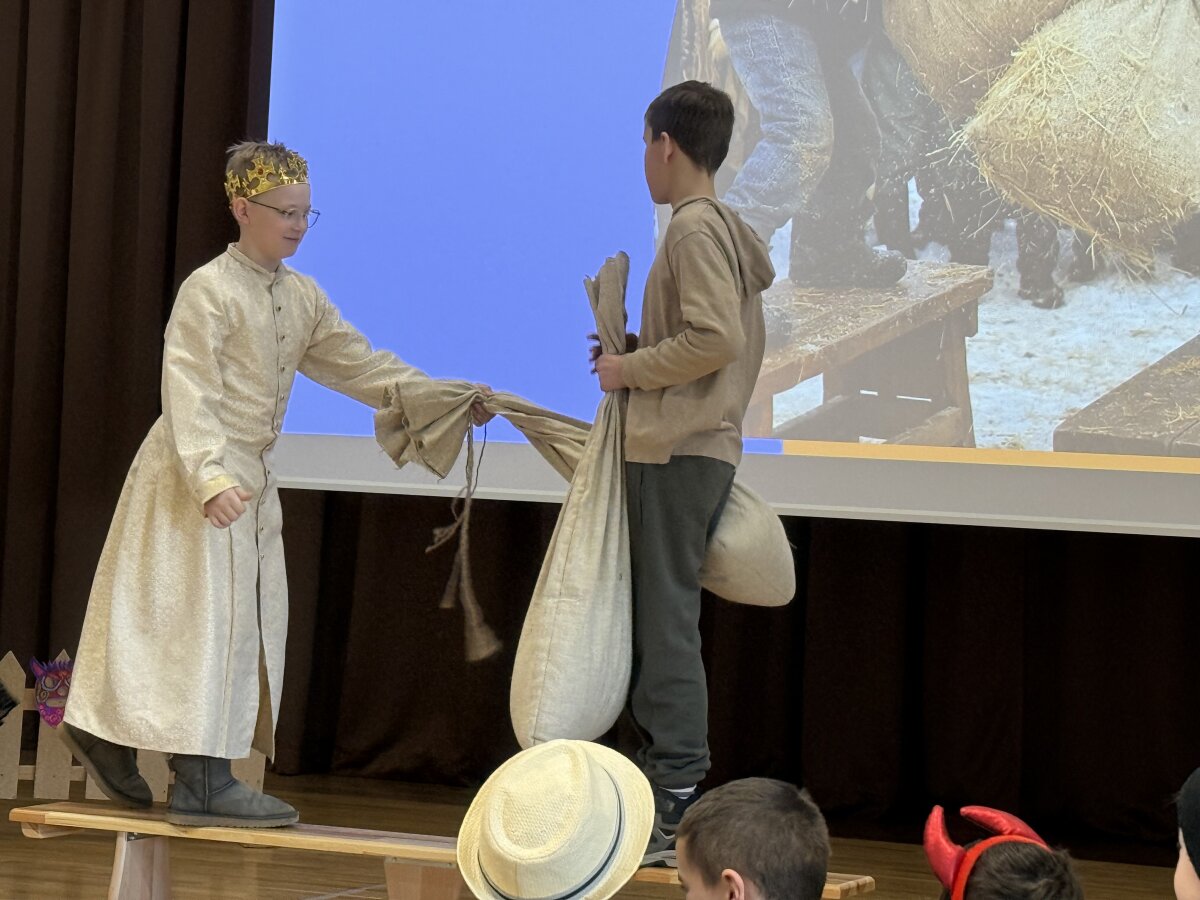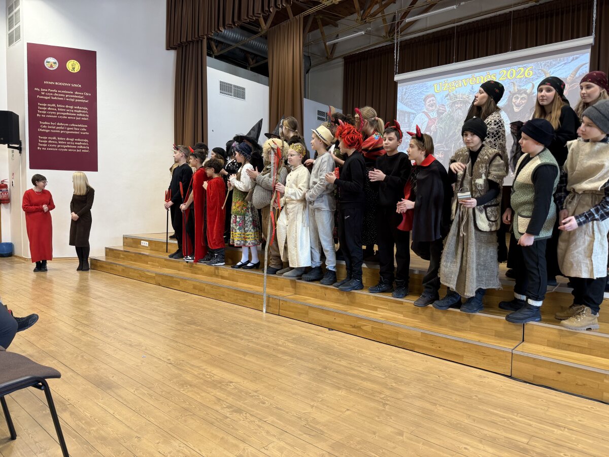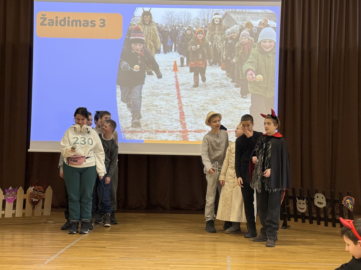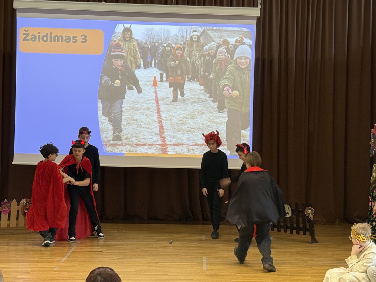Projekte dalyvavę 6c klasės mokiniai, padedami mokytojų I. Jakštienės, E. Stankevičienės, J. Griškevičės ir A. Rogelėvič, parengė teatralizuotą pasirodymą „Užgavėnių linksmybės“, į kurį pakvietė naujuosius draugus iš Vilniaus Šilo ugdymo centro. Scenoje atgijo tradiciniai Užgavėnių personažai – Gavėnas, Lašininis, Kanapinis, šeimininkė, ubagai, raganaitės bei įvairios mitinės būtybės. Skambėjo linksmos dainos, netrūko juoko ir smagios Lašininio bei Kanapinio kovos, simbolizuojančios žiemos ir pavasario dvikovą. Personažai ne tik linksmino žiūrovus, bet ir supažindino juos su šventės papročiais bei tradicijomis.