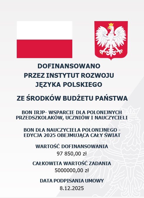 Z radością informujemy, że Progimnazjum im. Jana Pawła II w Wilnie otrzymało bon nauczyciela polonijnego o wartości 97 850,00 zł. To realne wsparcie dla nauczycieli sfinansowano przez Instytut Rozwoju Języka Polskiego ze środków budżetu państwa za pośrednictwem Fundacji „Pomoc Polakom na Wschodzie" im. Jana Olszewskiego. Ogromnie dziękujemy za zaufanie i wsparcie naszych działań! Dzięki środkom z programu Bon Nauczyciela Polonijnego możemy rozwijać kompetencje naszych nauczycieli, podnosić jakość nauczania i jeszcze lepiej wspierać naszych uczniów oraz całą szkolną społeczność.