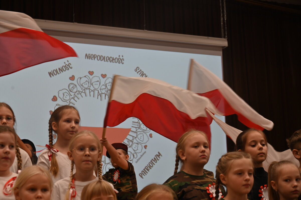 W słowach skierowanych do uczniów, nauczycieli i rodziców pani dyrektor Janina Wysocka podkreśliła znaczenie wspólnego świętowania. – Dziś łączą nas biało-czerwone barwy, które są symbolem naszej historii, odwagi i miłości do Ojczyzny. Patrząc na Was – młodych, utalentowanych, uśmiechniętych i pełnych energii – wiem, że mamy piękną przyszłość. Pamiętajmy, że wolność nie jest nam dana raz na zawsze, dlatego pielęgnujmy ją w codziennych gestach – w życzliwości, wzajemnym szacunku i trosce o drugiego człowieka.