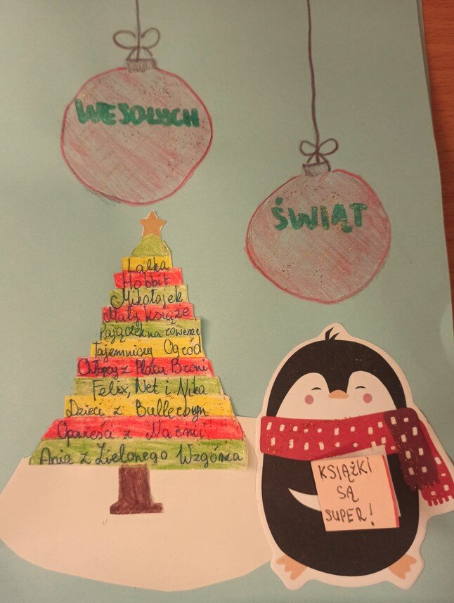 Biblioteka szkolna z ogromną radością przyjmuje piękne świąteczne życzenia od uczniów. Czytelnicy życzą nam nowych książek, przytulnej atmosfery, wielu pomysłów oraz licznych odwiedzających. Dziękujemy - będziemy się starać dla Was! Z kolei my życzymy naszym wiernym czytelnikom radosnych Świąt Bożego Narodzenia, dużo przyjemności z czytania oraz zdobywania nowej wiedzy.